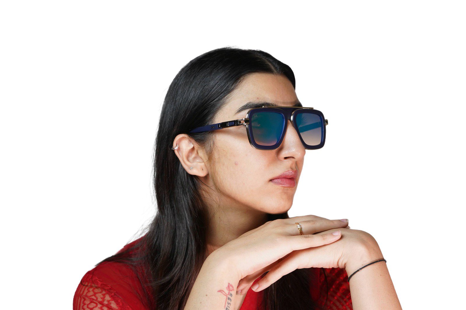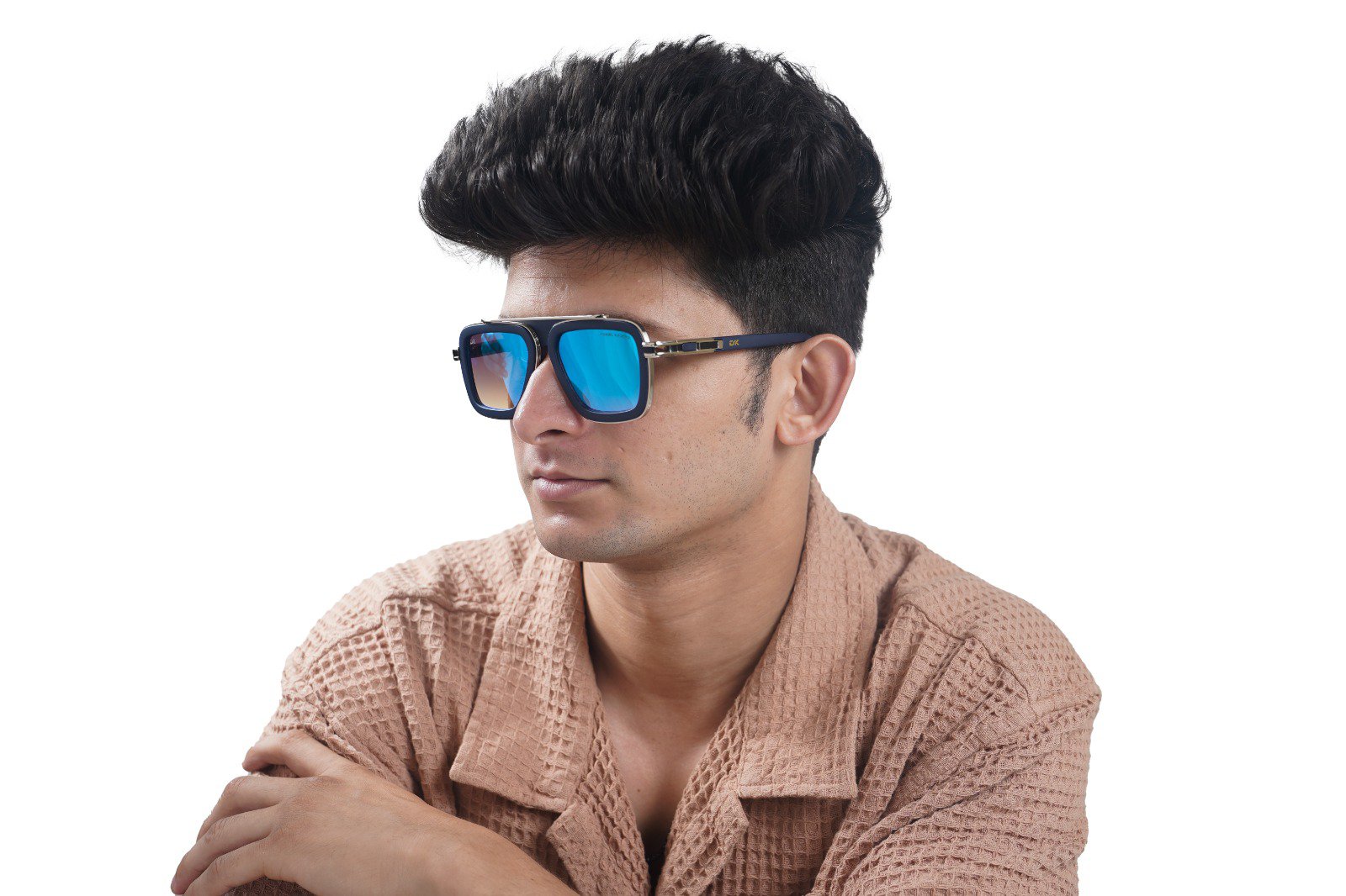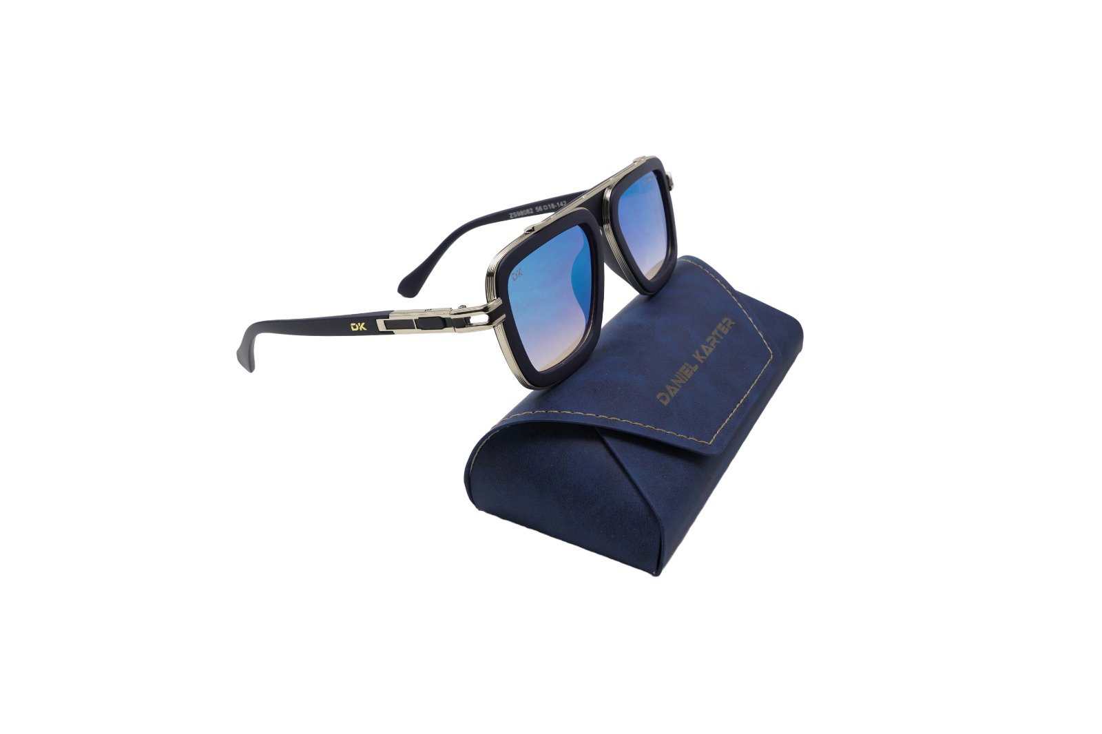 Inspired by the iconic styles of Hollywood and haute couture, the Navigator model offers a powerful and sophisticated look. It features a unique, layered construction: a sleek black acetate (or plastic) frame encased by sophisticated gunmetal or silver-tone metal accents. The distinctive double bridge and temple detailing (note the DK logo hardware) lend a feeling of premium craftsmanship and exclusivity.