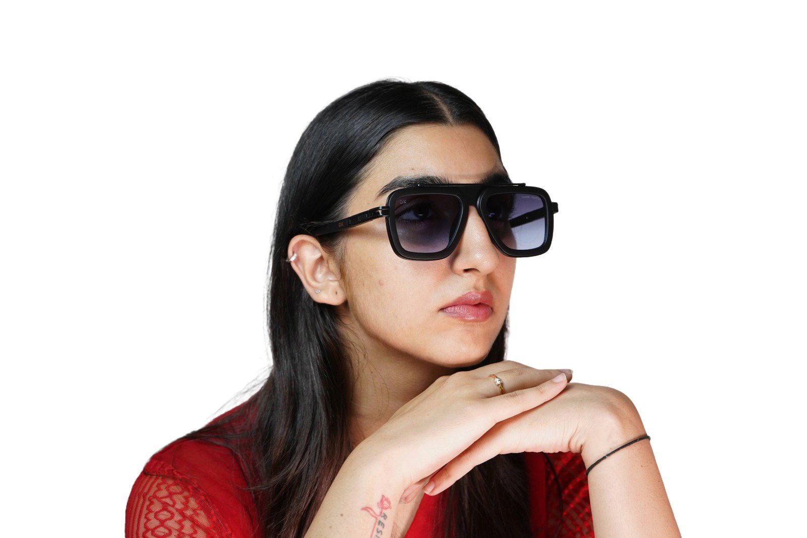 Inspired by the iconic styles of Hollywood and haute couture, the Navigator model offers a powerful and sophisticated look. It features a unique, layered construction: a sleek black acetate (or plastic) frame encased by sophisticated gunmetal or silver-tone metal accents. The distinctive double bridge and temple detailing (note the DK logo hardware) lend a feeling of premium craftsmanship and exclusivity.