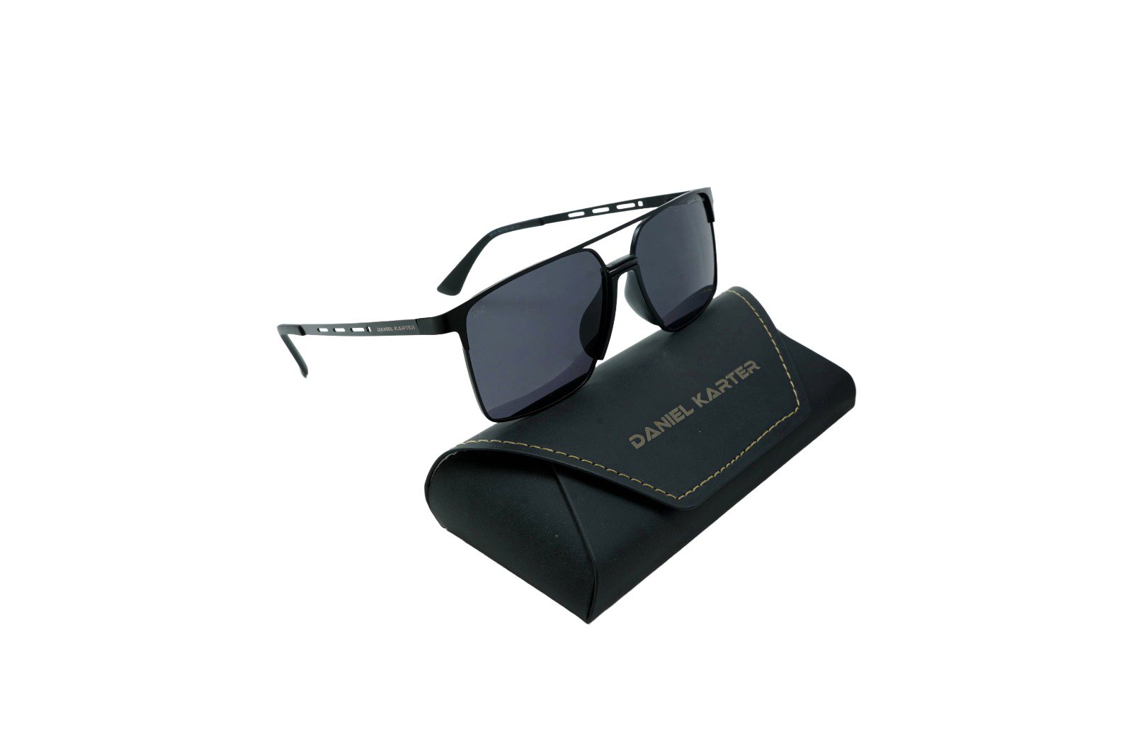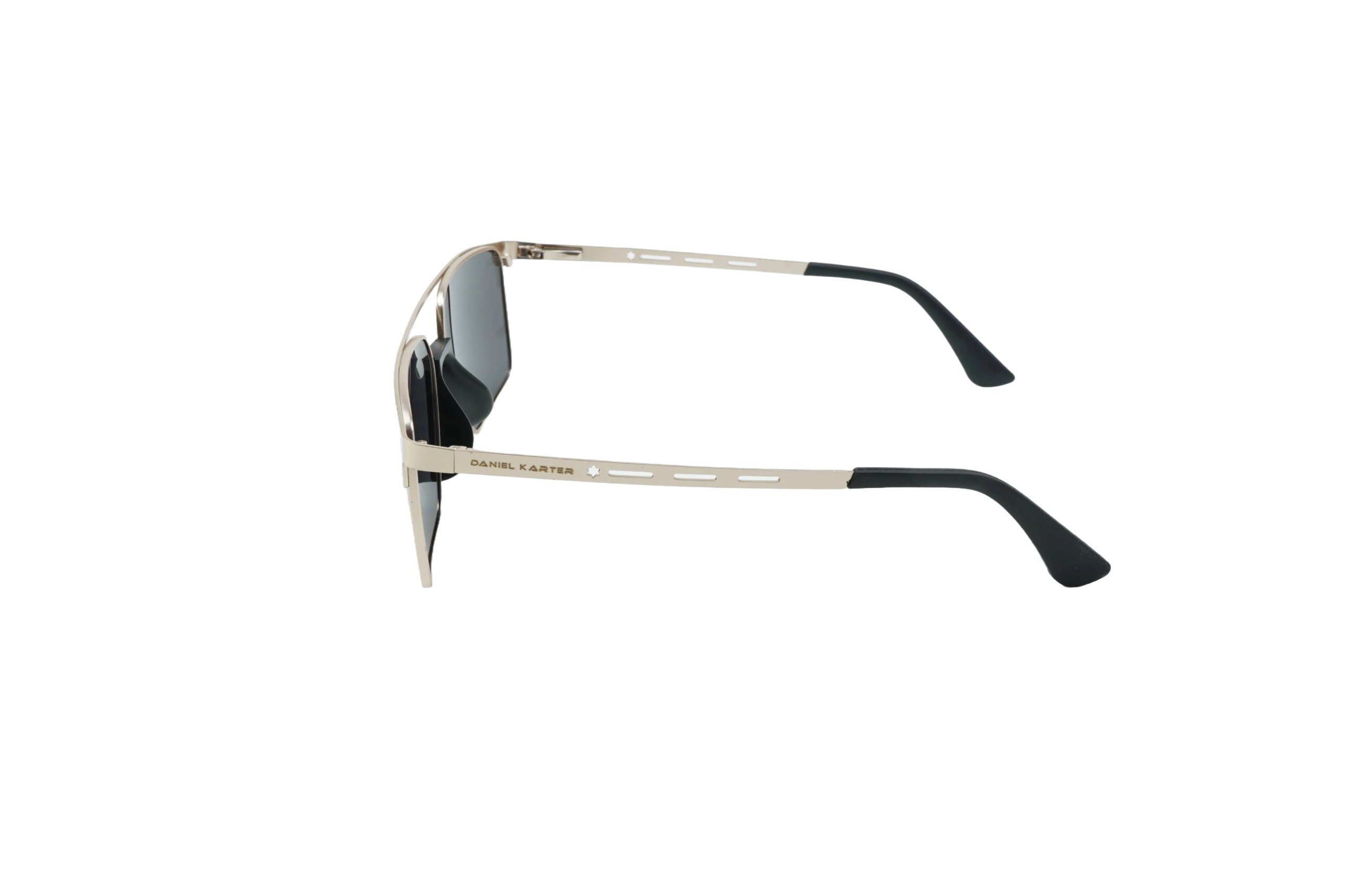 A contemporary classic. The Daniel Karter “Maverick” is a sophisticated square metal aviator featuring a high-shine gold frame and bold, dark grey lenses. The perfect blend of strength and sleek design for the modern individual…