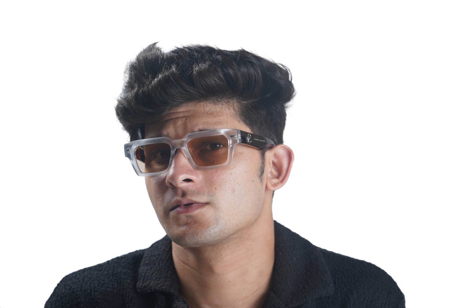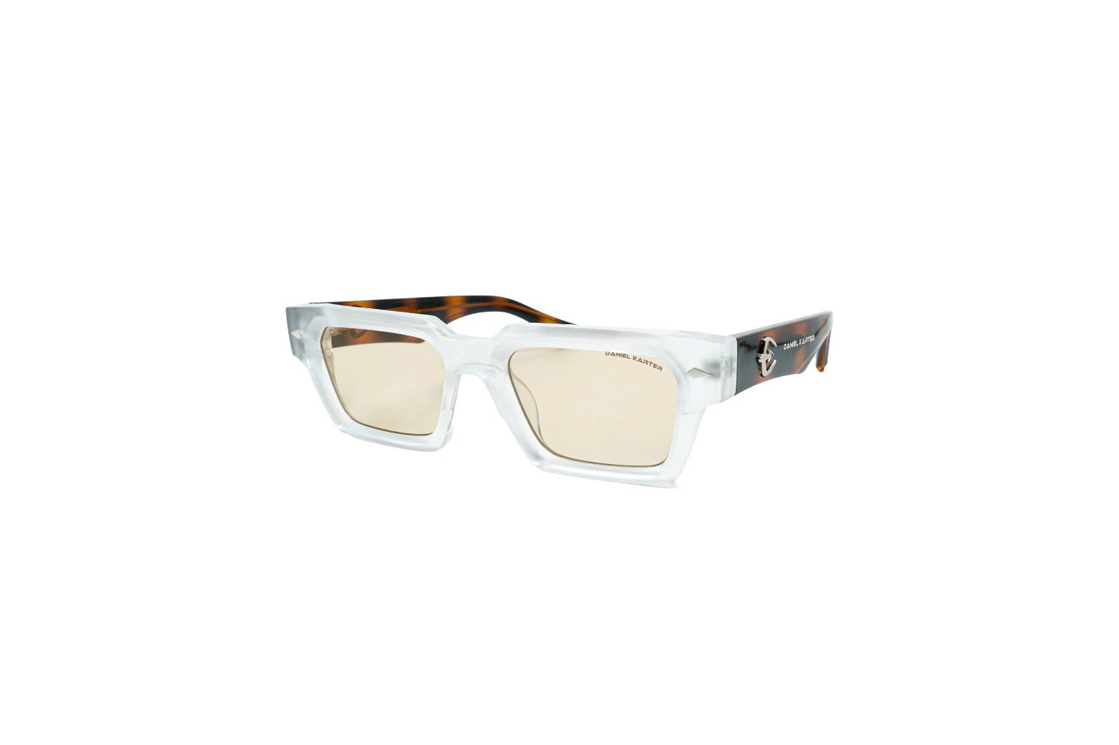 Daniel Karter Orbit: Step into the future with these cutting-edge geometric sunglasses. Featuring a structured gunmetal frame with angular temple accents and bold, solid purple lenses. A true statement piece for the avant-garde.