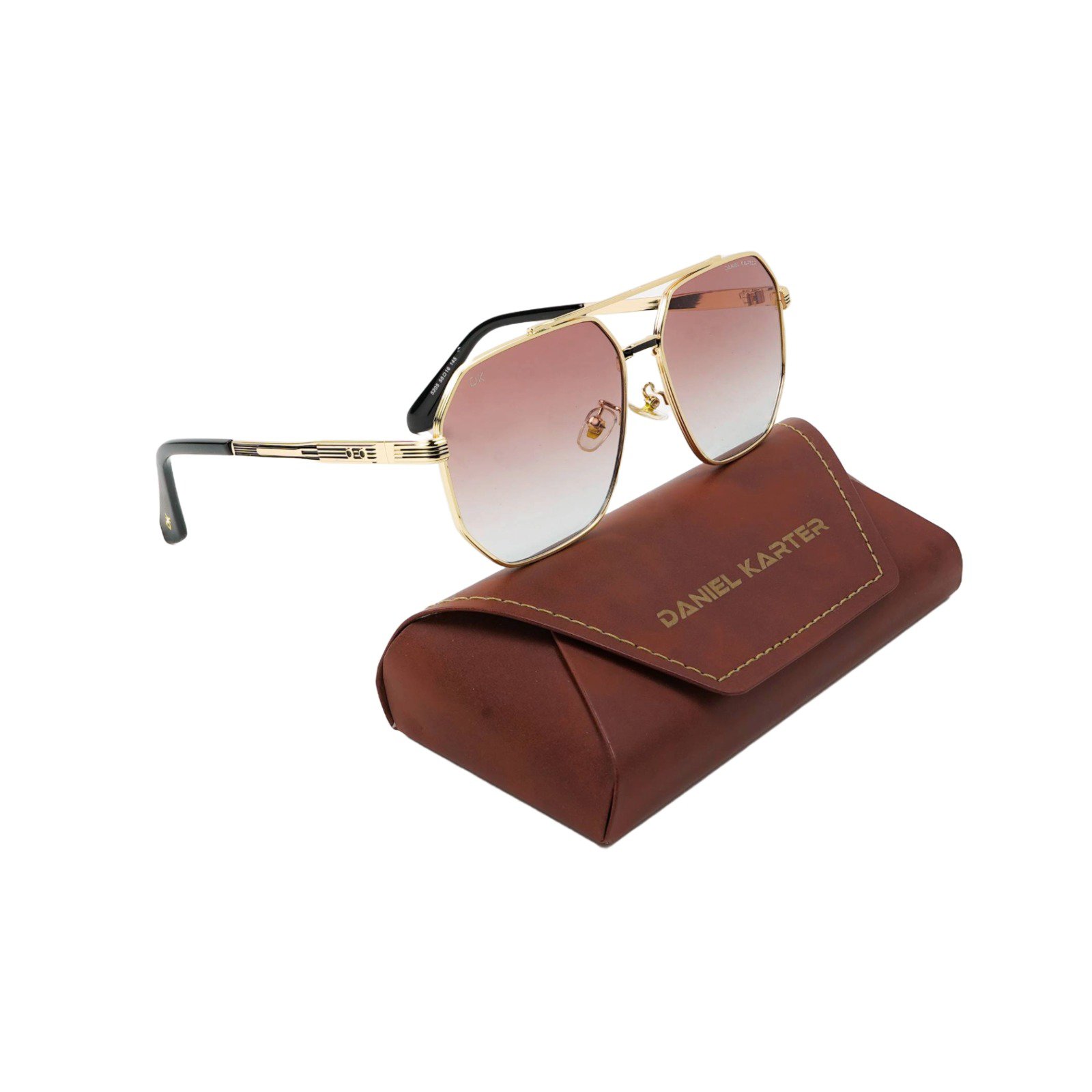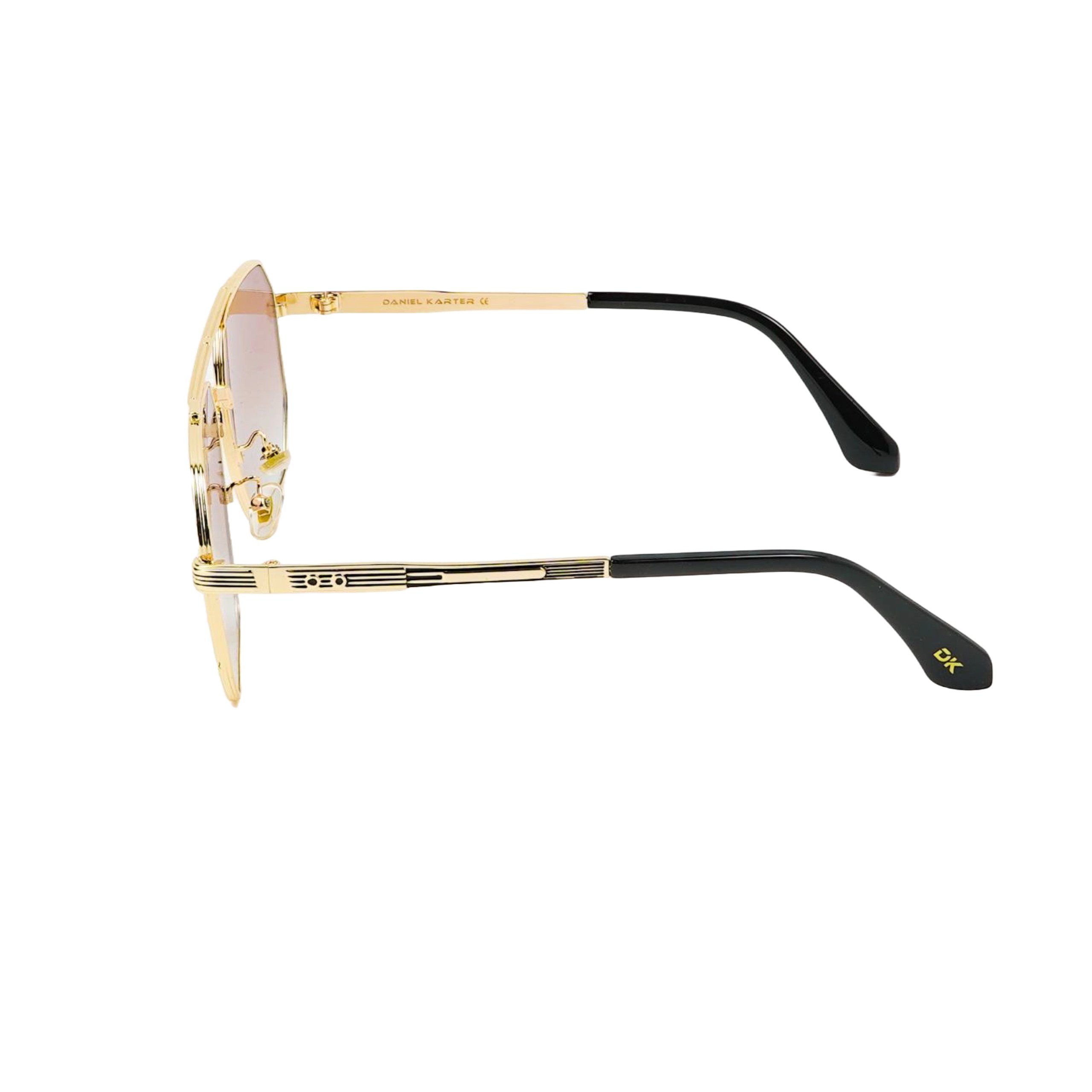 Make a statement with the Daniel Karter “Majesty” Sunglasses. These geometric aviators feature a luxurious gold frame, a stylish double bridge, and dazzling purple gradient lenses. Perfect for those in Delhi who want to add a regal touch to their everyday look..