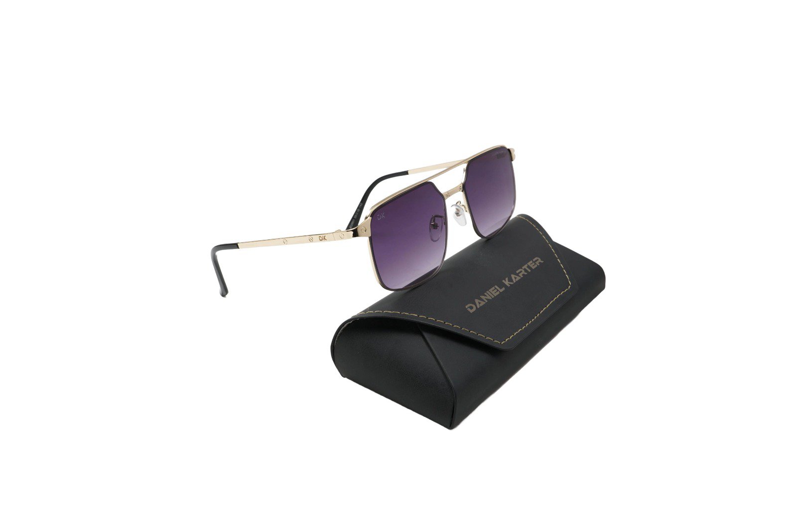 Capture the colors of the evening with ‘The Twilight Sky.’ Featuring a polished silver metal frame and a captivating purple-to-blue gradient lens, these sunglasses offer a contemporary and luxurious aesthetic. The subtle Daniel Karter branding on the temples marks this as an essential piece for the style-conscious individual