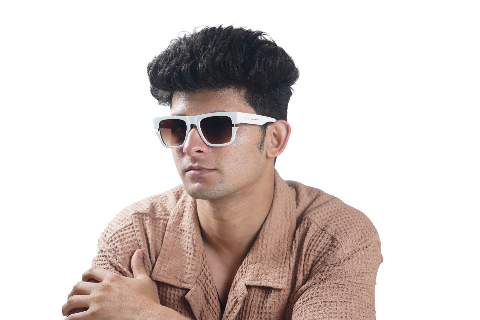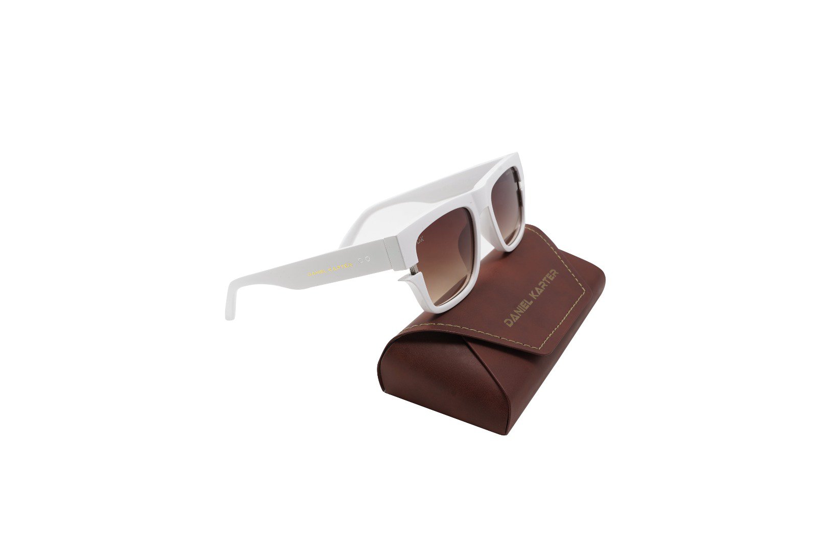 Make a bold, futuristic statement with the Apex Edge Shades. These sunglasses feature a unique, chunky matte white frame with an aggressive brow line and modern cut-out temple detailing. Fitted with rich, mocha brown gradient lenses, they provide 100% UV protection and undeniable style. Comes with a premium Daniel Karter leather-look case