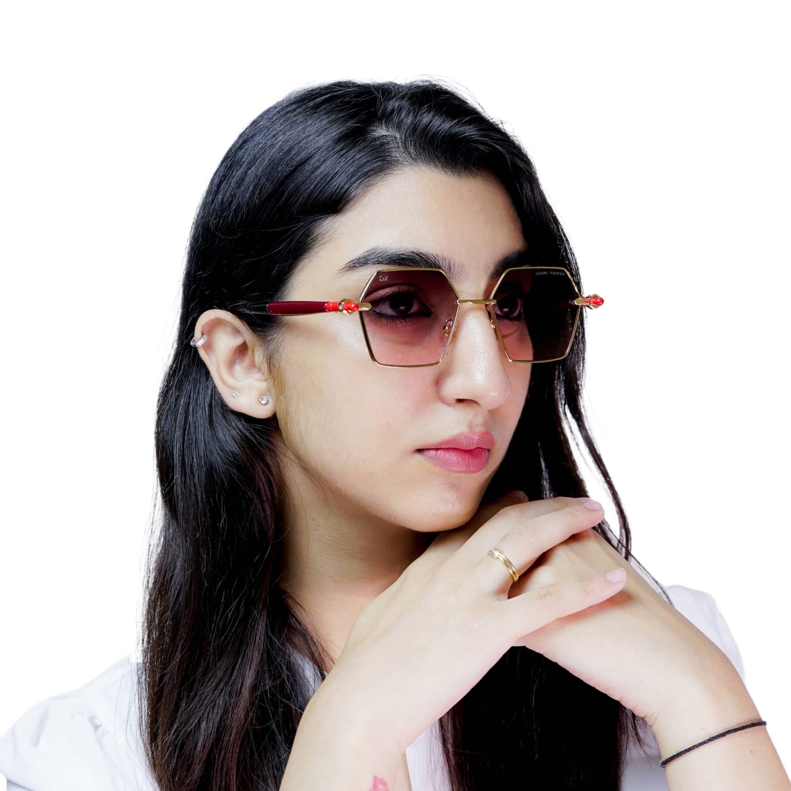 Unleash opulence with the Daniel Karter Luxury Gold Shield Visor. This rimless design features a single, bold lens framed by striking gold-tone accents and intricate detailing. The integrated side shields give it a futuristic, avant-garde finish, making it the ultimate statement piece for fashion elite