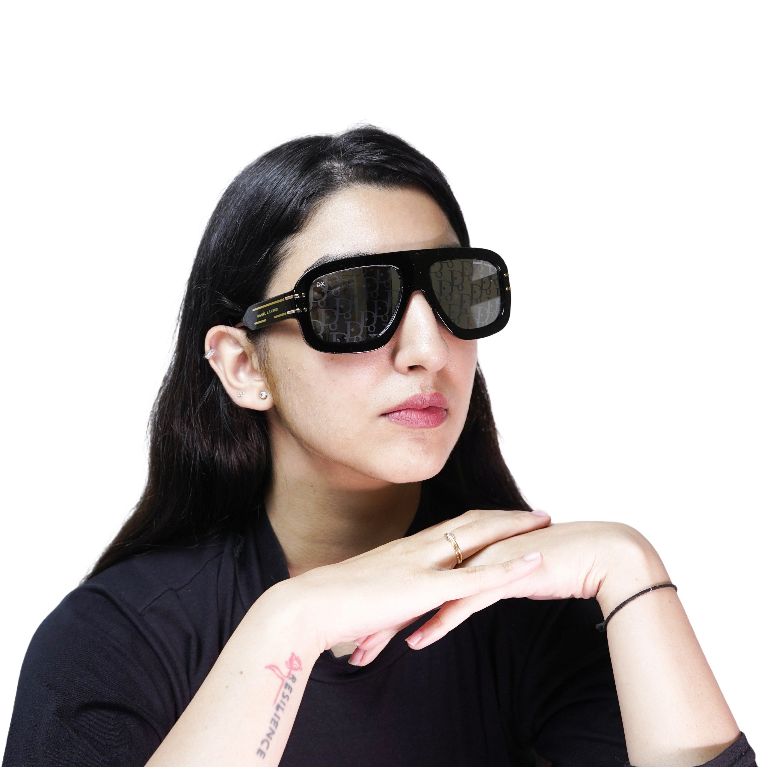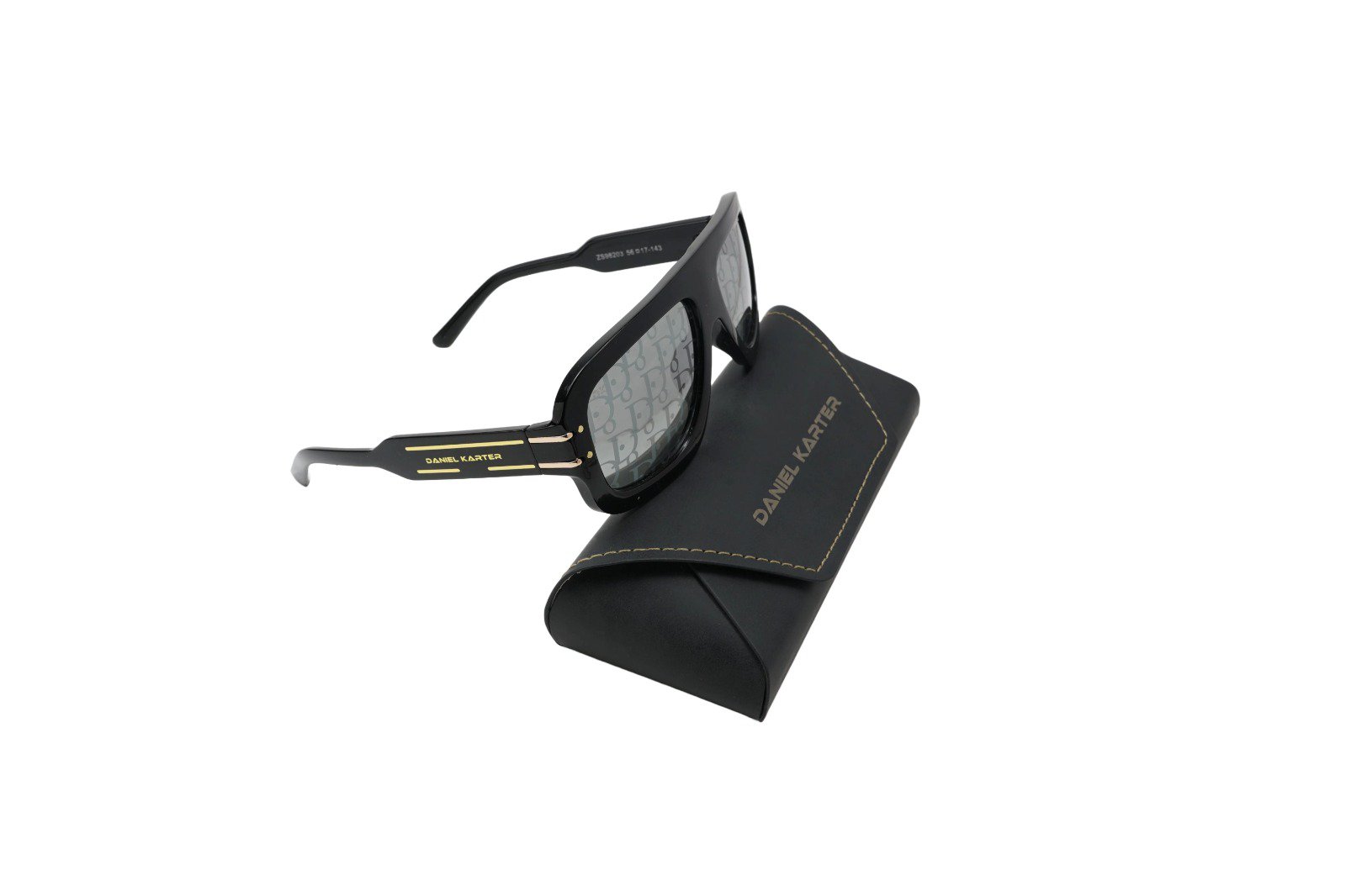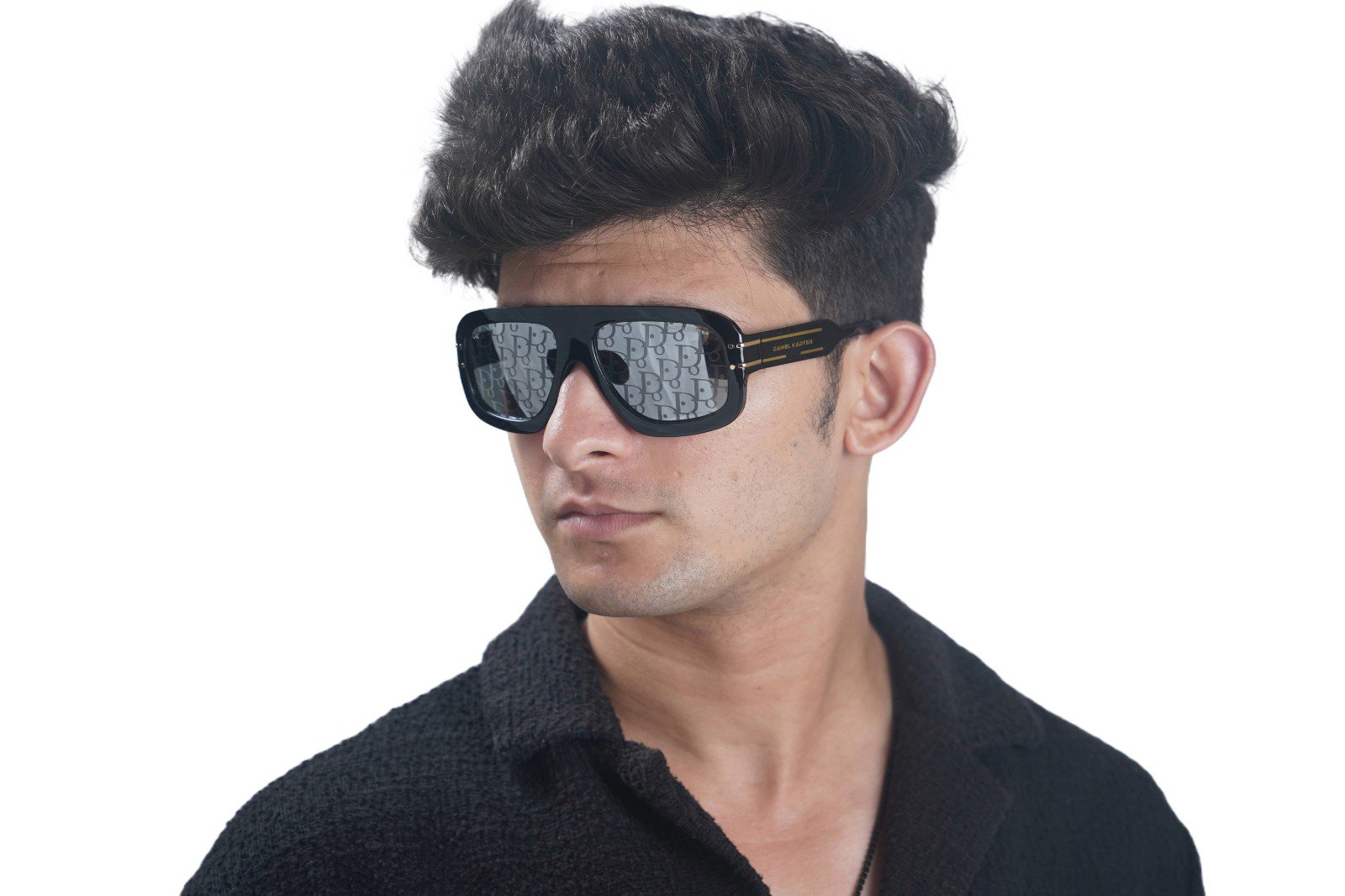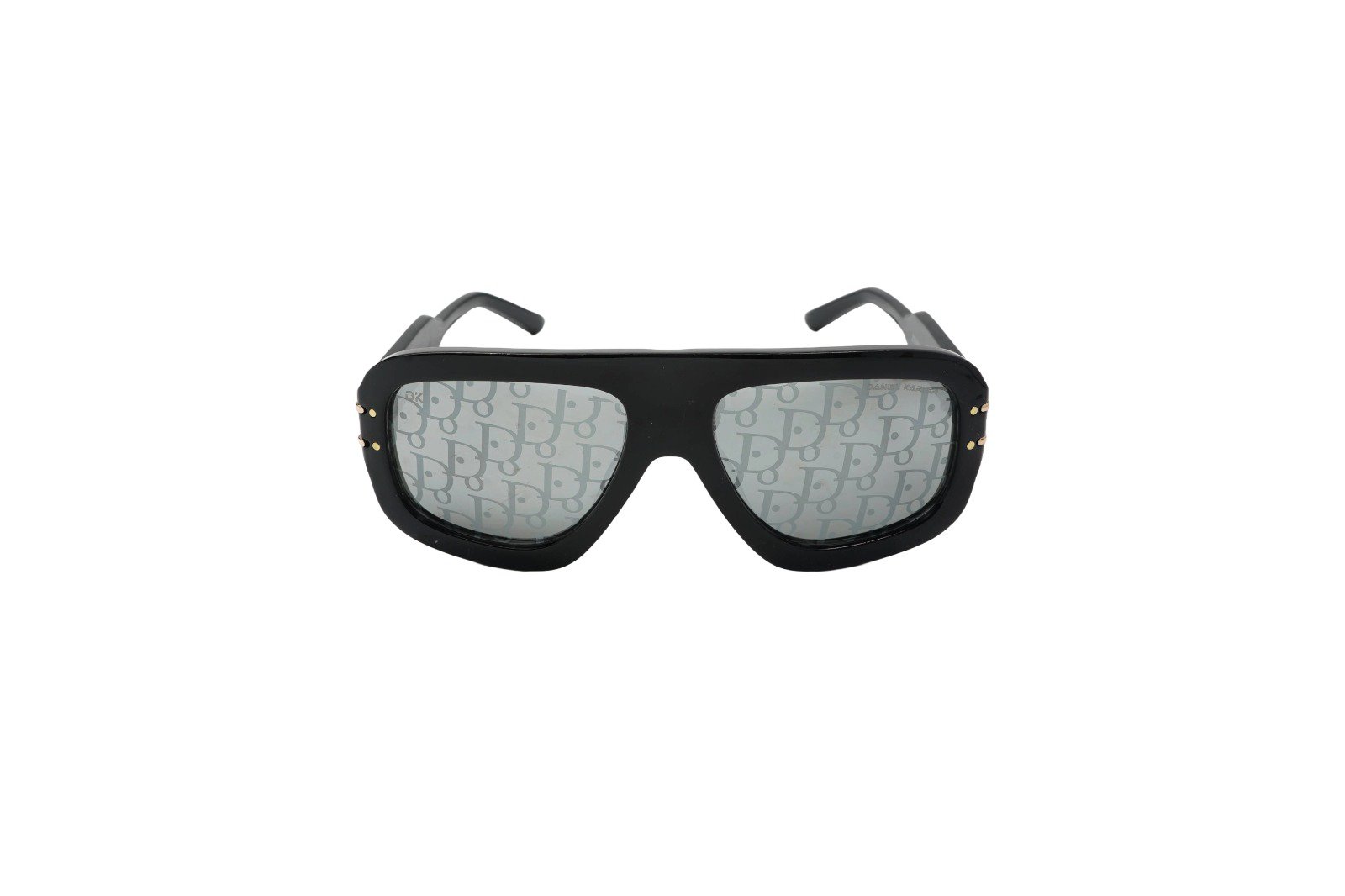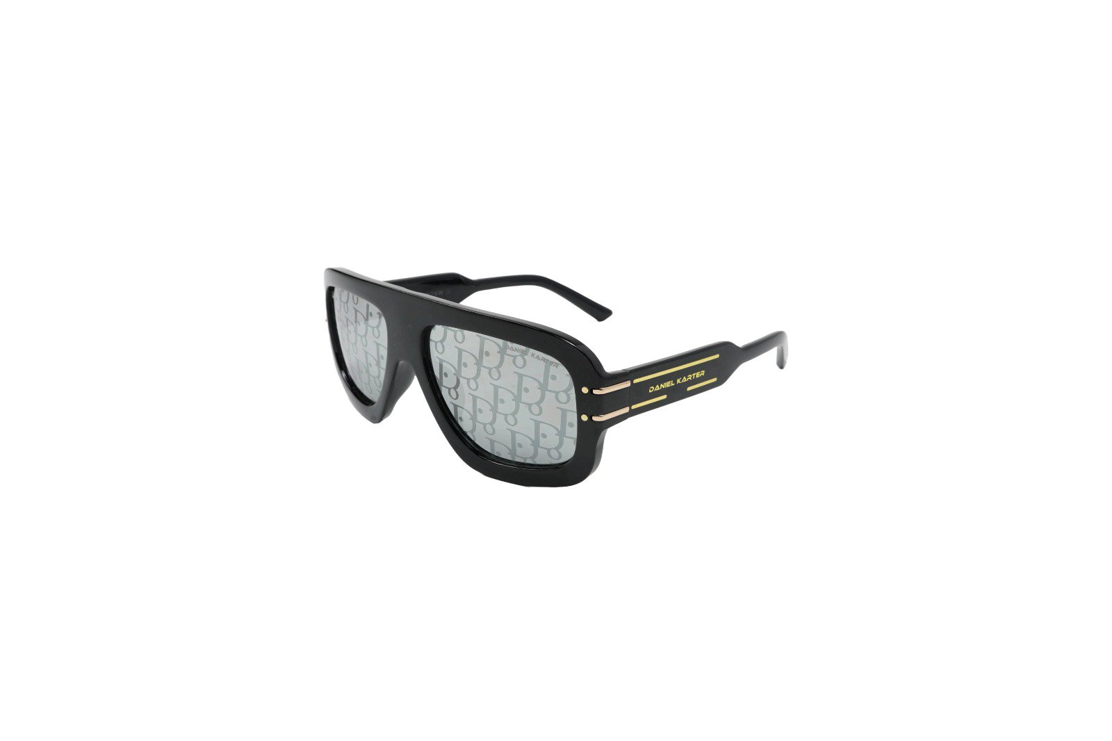 Make a statement with the Daniel Karter Oversized Monogram Flat-Top Sunglasses. Combining a bold, wide frame with a signature patterned lens, these shades are the ultimate high-fashion accessory. Finished with sleek gold-tone hardware on the temples, they are designed for those who dare to stand out. Includes a premium branded hard case