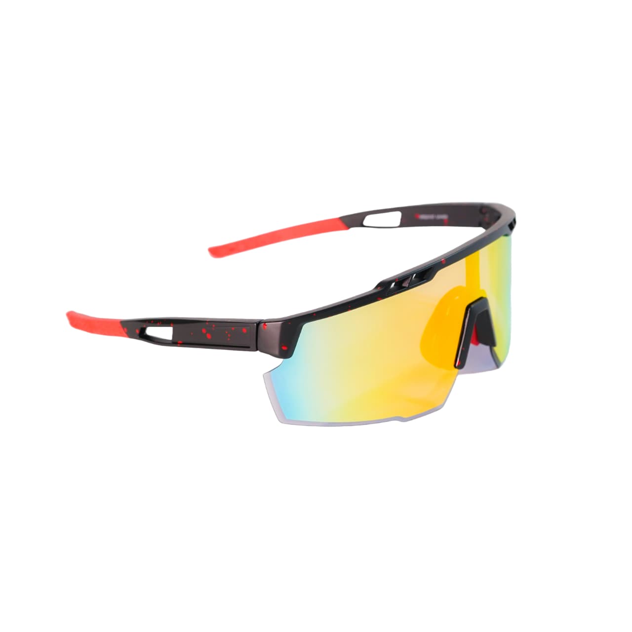 Aggressive Black and Red Frame: The lightweight, durable TR90 frame comes in a matte black finish with subtle red speckles and bold red temple tips and nose pad. This design conveys speed and resilience.
